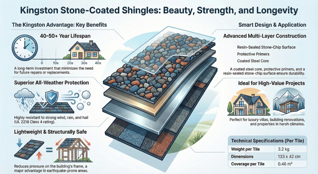 We understand that contractors need a transparent Metal Roof Tile Cost per sqm to win bids. Kingston offers flexible pricing structures for bulk orders and international export. Whether you are a distributor looking for Roofing Tiles for Sale or a private developer, our factory-direct model ensures you get the most competitive rates without compromising on the “Original Kingston Quality.”