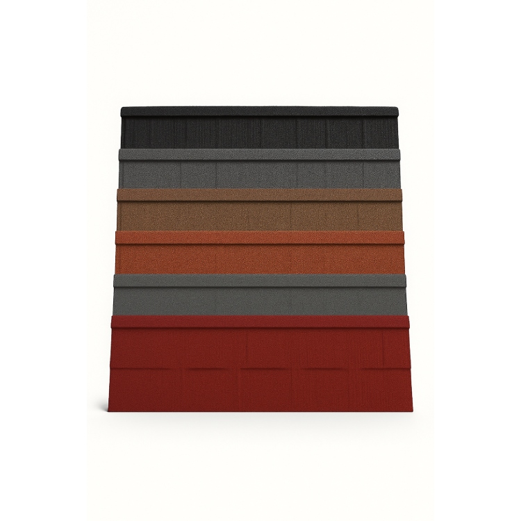 When you Buy Stone Coated Steel Shingles from us, you are getting a product treated with a specialized acrylic overglaze. This layer prevents moss growth and ensures the natural stone colors remain vibrant for decades, even under intense UV exposure.
